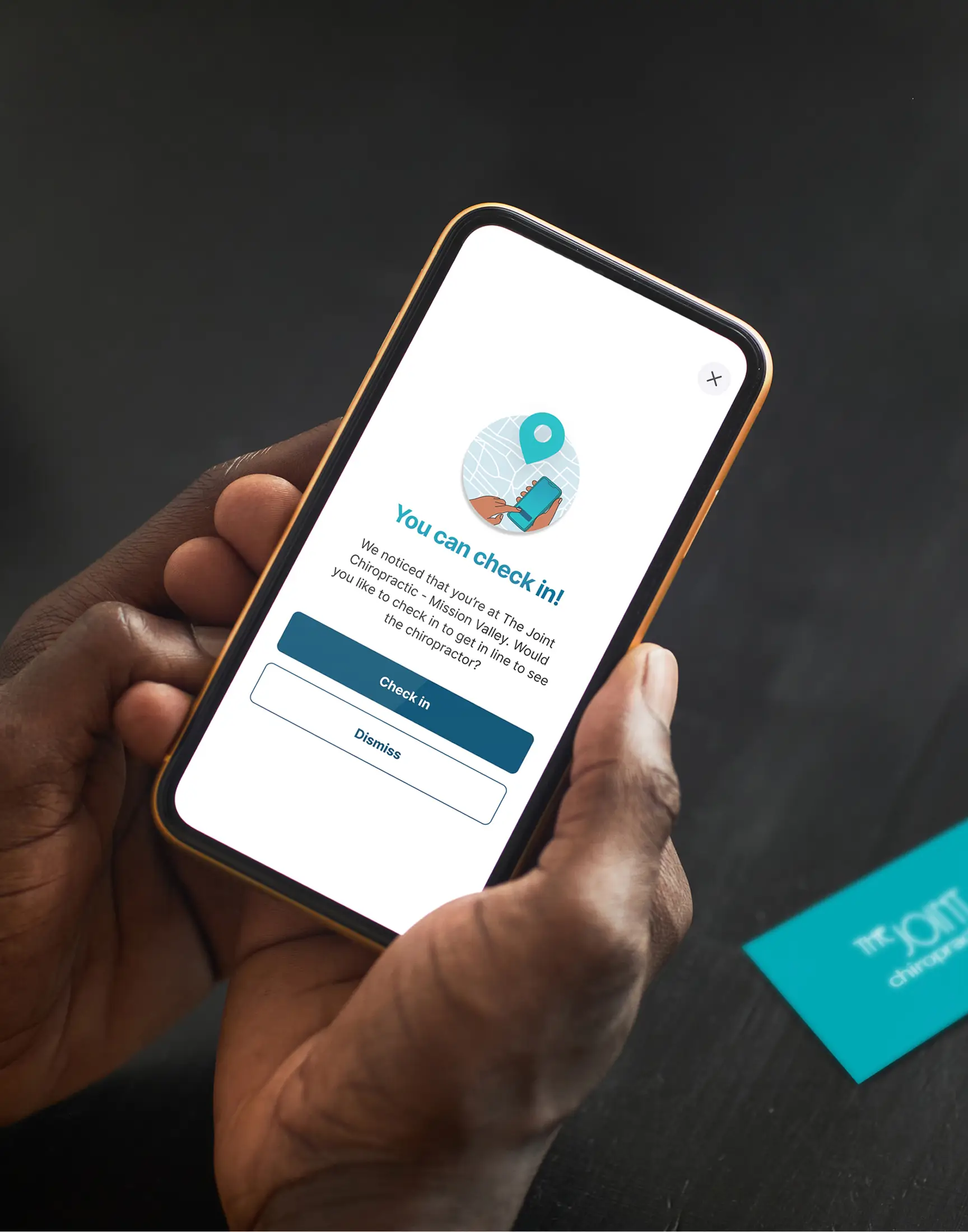 Chiropractic care should be simple and convenient—and now it is. The Joint Chiropractic app puts everything you need at your fingertips. Check in quickly, see which doctors are in the clinic, find a location near you, and receive notifications, all without the hassle of appointments. Stay connected to your care with greater ease, whether you're on the go or planning your next visit.