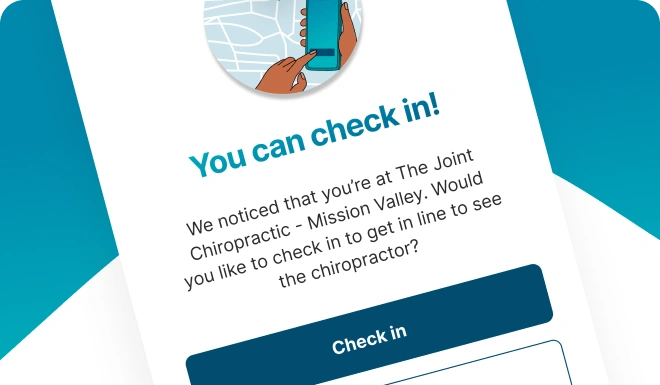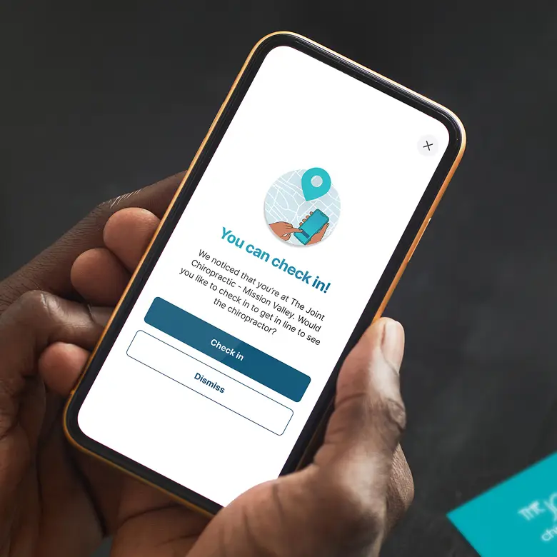 Easy! When you arrive at your clinic, just open the app and tap “Check In.” That's it! Have a seat and the Doctor of Chiropractic will call you when it's your turn.